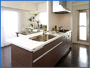 窓や勝手口が付くことにより風通しもよくなり、臭いがこもりにくくなります。料理をしながらでも、外の景色やリビングにいる子どもたちの様子が見えるので、長い時間キッチンにいることの多い主婦の方にも好評です。また、シンクや作業台に直射日光が当たると乾きやすくなります。つまり、いろいろな面で気分がよくなります。この快適さが南面キッチンの最大の長所なのです。